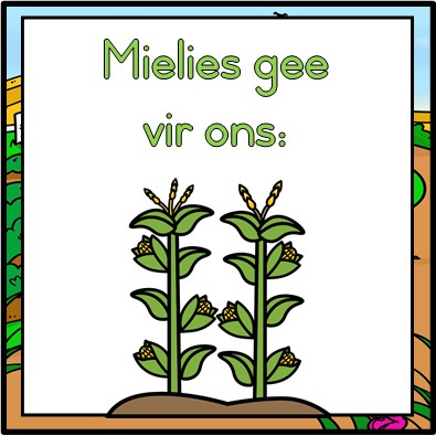 Die tema is gemaak vir jonger maats en bestaan uit plantprodukte en voorbeelde – 30 bladsye